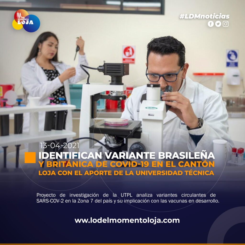 Con el propósito de identificar y analizar las variantes circulantes de COVID-19 en la Zona 7 del país, desde noviembre de 2020, la Universidad Técnica Particular de Loja (UTPL) generó una alianza interinstitucional como parte de un proyecto de investigación con la Universidad San Francisco de Quito (USFQ), el Hospital Manuel Ygnacio Monteros y el Ministerio de Salud Pública, que actualmente permitió la identificación de la variante británica y brasileña en la localidad; siendo la variante brasileña identificada por primera vez en el país.