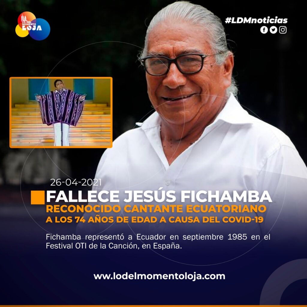 El artista Gustavo Pacheco confirmó esta mañana el deceso de Jesús Fichamba, quien fue ingresado el pasado 14 de abril al hospital Bicentenario de Guayaquil por coronavirus.