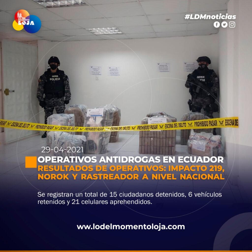 #Ecuador | Mediante rueda de prensa Policía Nacional dio detalles de los resultados de los operativos antidrogas: Impacto 219, Norok y Rastreador a nivel nacional.