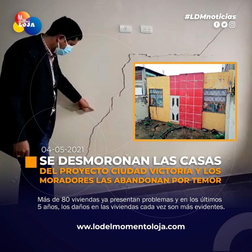 Tras una invitación a medios de comunicación, Wilmer Leiva como Presidente del Barrio, manifestó que un estudio contabilizó 80 casas en mal estado y solicitan una respuesta al Municipio de Loja para conocer si el problema se da por movimiento de tierras o por malas construcciones, pues el proyecto de Ciudad Victoria fue construido en la administración del actual Alcalde Bailón.