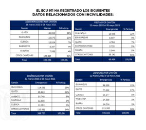 Se mencionó que el ECU 911 implementó estrategias y planes de contingencia para enfrentar la pandemia entre las que se destacan: la generación y análisis de datos estadísticos para la toma de decisiones de nivel estratégico, se diseñaron prefijos para la identificación de eventos no previstos en el catálogo de incidentes y que se generaron debido a la crisis sanitaria, se realizó la incorporación de analítica de video y el fortalecimiento del sistema de cámaras para el control del distanciamiento social y físico con la plataforma DISTANCIA2.