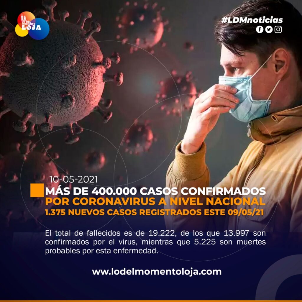#Nacional | Tras detectarse 1.375 personas contagiadas en un solo día, este domingo 09 de mayo de 2021. Ecuador superó los 400 mil casos de coronavirus confirmados con pruebas PCR.