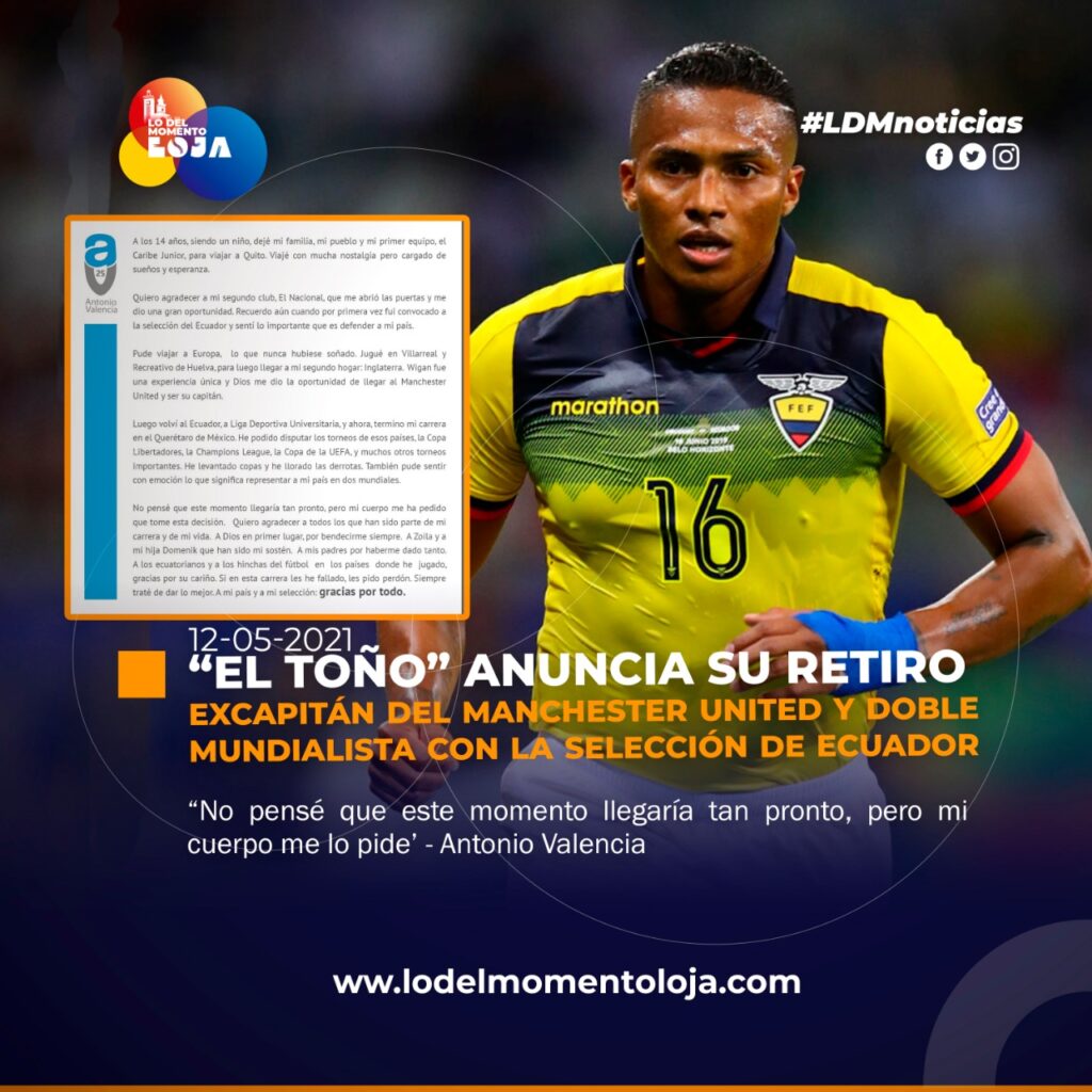 #Deportes | Antonio Valencia anunciará su retiro del fútbol profesional.