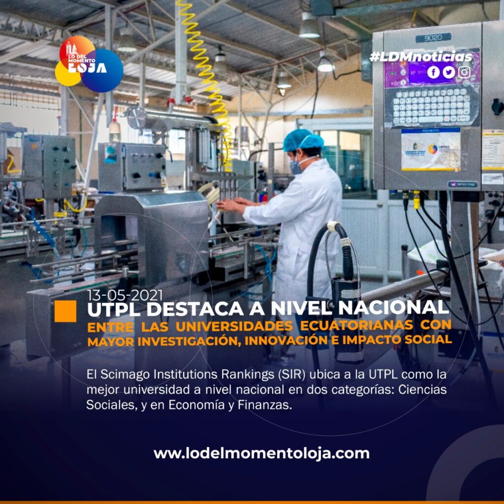 La Universidad Técnica Particular de Loja (UTPL) destaca entre las universidades sobresalientes a nivel nacional, de acuerdo al “Scimago Institutions Rankings (SIR)”, una clasificación universitaria internacional que evalúa a 75 333 universidades, instituciones y compañías de países de todo el mundo.