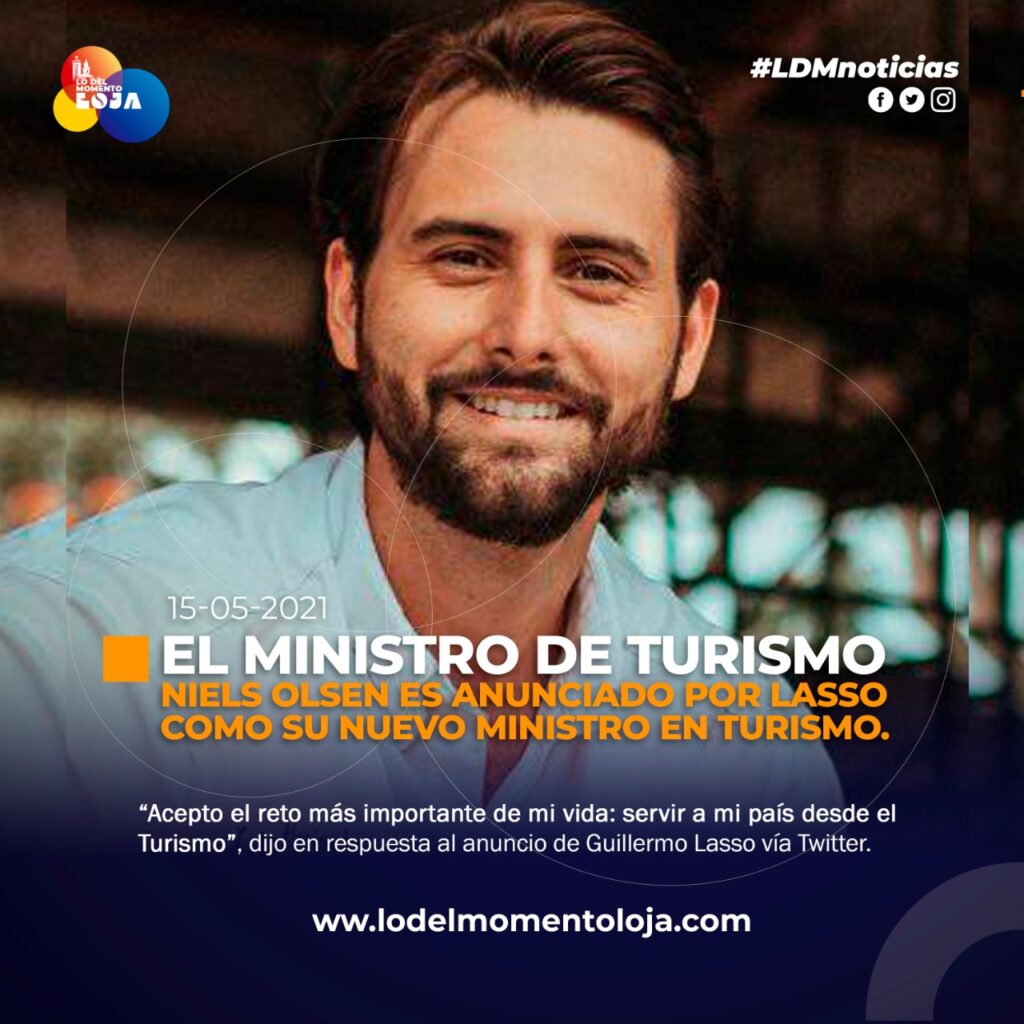El director de la Hacienda La Danesa, Niels Olsen, será el nuevo Ministro de Turismo, así lo anunció el presidente electo Guillermo Lasso a través de su cuenta oficial de Twitter.