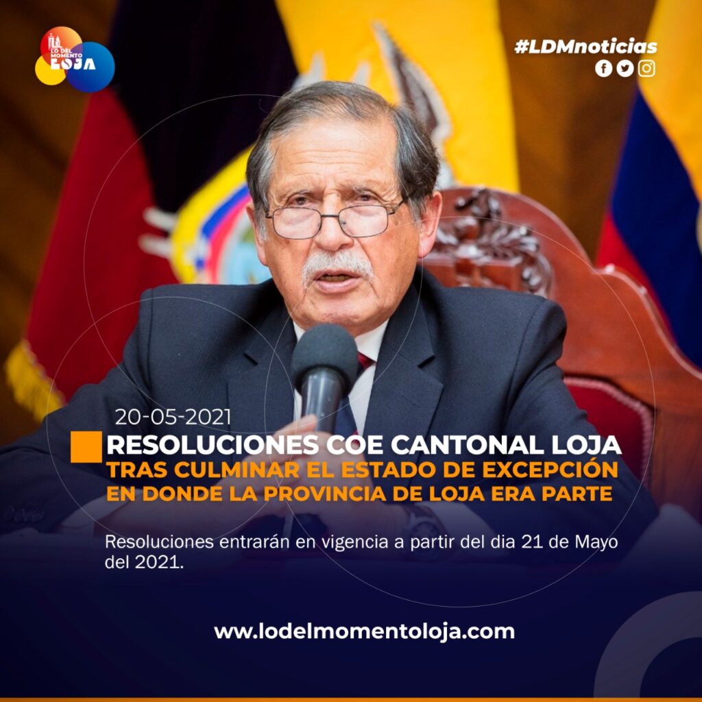 Tras culminarse el estado de excepción en las 16 provincias (incluida Loja), hoy el COE Cantonal ha decidido las siguientes medidas de restricción, mismas que entran en vigencia a partir del 21 de Mayo