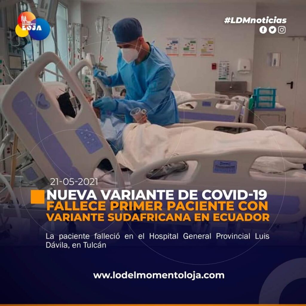 #Ecuador | El Ministerio de Salud Pública (MSP) informó que la paciente con la variante de Sudáfrica (501Y. V2) falleció la mañana de este viernes 21 de mayo del 2021, en el Hospital General Provincial Luis Dávila, en Tulcán (Carchi).