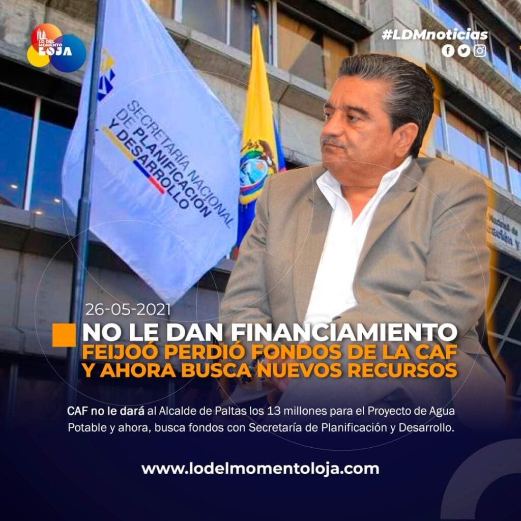 Mientras tanto, en diciembre del 2020 el BDE ya le informaron al Alcalde de Feijoó mediante oficio que no suscriba ningún contrato hasta no contar con el pronunciamiento de CAF, pero no hizo caso al tema y se adjudicó el contrato al consorcio ILINIZAS del Ing. Miguel Ortega. Seguidamente, en enero del 2021 también era de conocimiento público los oficios emitidos de la CAF sobre esta prohibición del uso de los 13 millones de dólares que entregaban al GAD Paltas, pero el Alcalde seguía con la negativa ante el tema, incluso afirmaba en otros medios de comunicación que tenía todo controlado, pero hasta la presente es todo lo contrario.