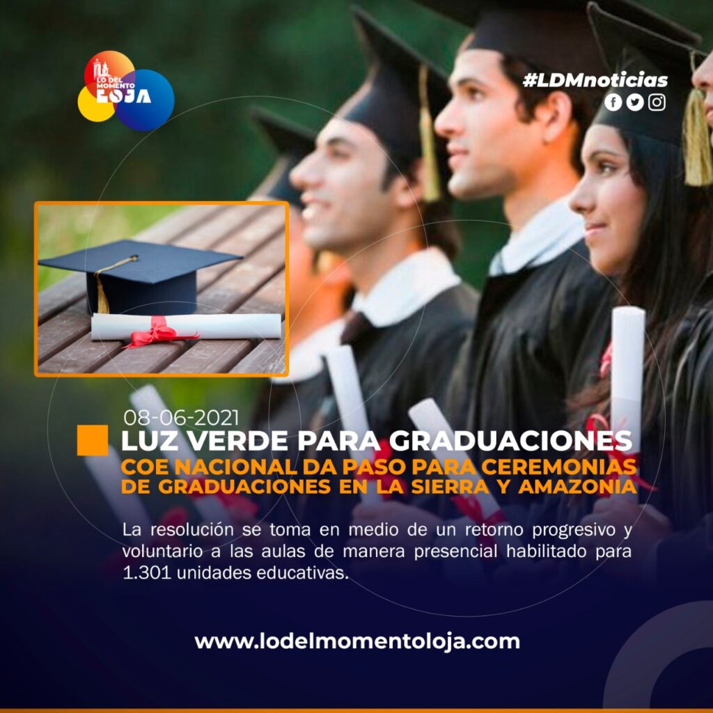 El Comité de Operaciones de Emergencia (COE) nacional aprobó los lineamientos de autocuidado e higiene para el desarrollo de ceremonias de graduación de estudiantes de tercero de bachillerato en las instituciones educativas del régimen Sierra-Amazonía 2020-2021, en el marco de la emergencia sanitaria, presentado por el Ministerio de Educación con el aval del Ministerio de Salud.
