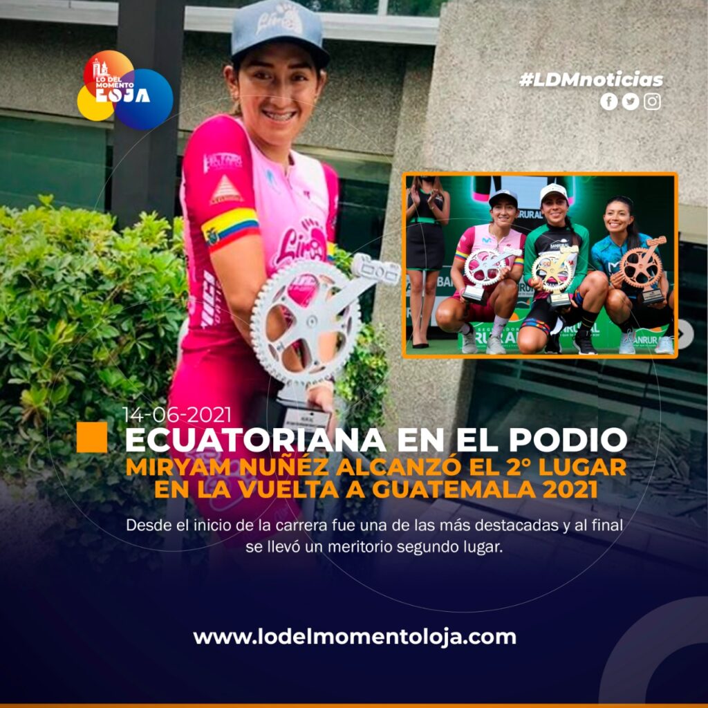 #Deportes | La ciclista ecuatoriana Miryam Núñez se subió al podio de la Vuelta Internacional Femenina a Guatemala, que concluyó el domingo 13 de junio del 2021.