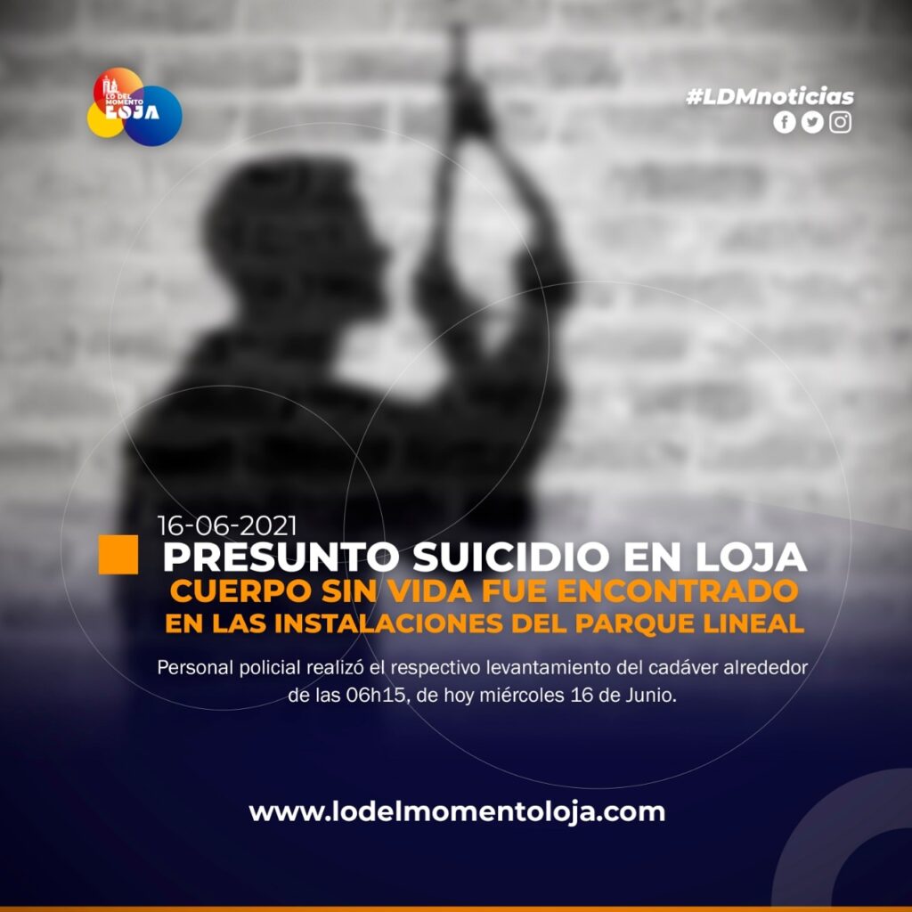 Alrededor de las 06h00 de este miércoles, 16 de junio de 2021, apareció colgado de un árbol, el cuerpo sin signos vitales de una persona de sexo masculino de aproximadamente 27 años, en el parque lineal La Tebaida, al sur de la ciudad de Loja.