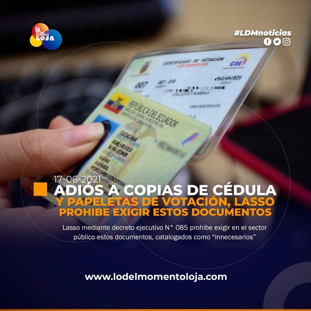 Mediante el Decreto Ejecutivo 85, firmado este miércoles, 16 de junio del 2021, por el presidente Guillermo Lasso, se ordena la prohibición de pedir copias de cédulas y certificado de votación.