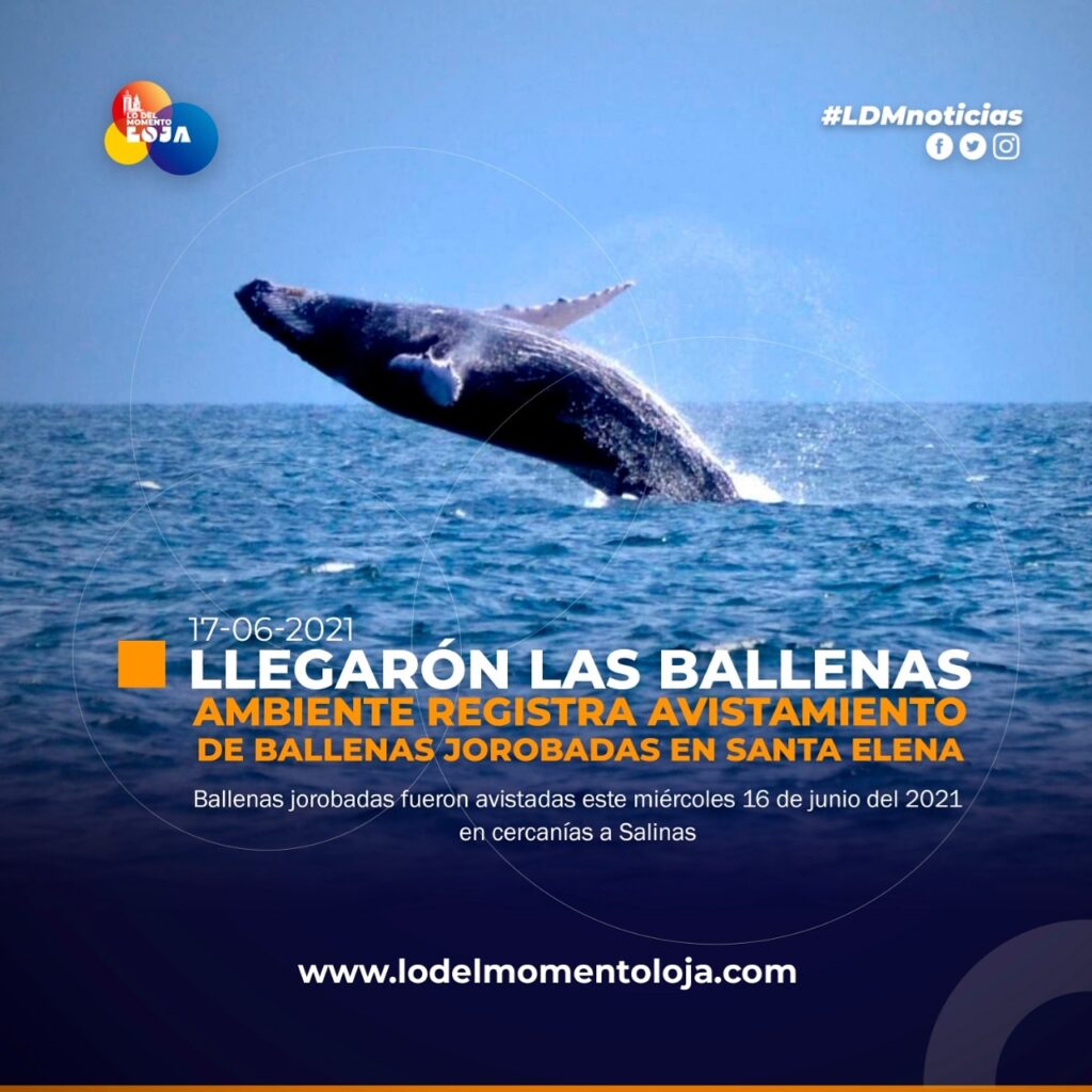 Personal de la Reserva de Producción de Fauna Marino Costera Puntilla reportó este miércoles 16 de junio del 2021 la primera observación oficial de ballenas jorobadas en las costas de Santa Elena, lo que marca el inicio de la temporada de avistamiento 2021 en Ecuador.