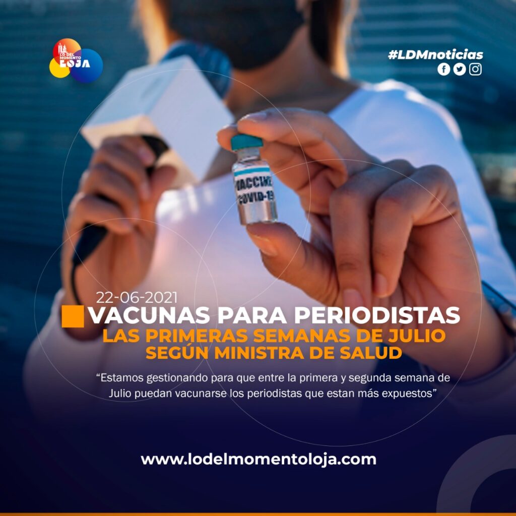 #Loja | La ministra de Salud Ximena Garzón, anunció que se encuentran gestionando con SECOM para que, entre la primea y segunda semana de Julio del 2021, puedan ser vacunadas las personas que se encuentran realizando la labor de periodismo (en las calles del país).