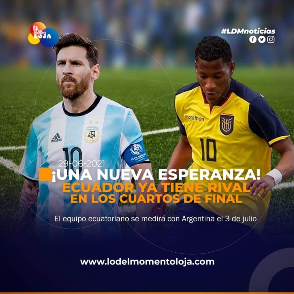 #Internacional | La Selección ecuatoriana se medirá contra Argentina el próximo sábado 3 de julio (20:00) en el estadio Olímpico de Goiania, por los cuartos de final de la Copa América 2021.