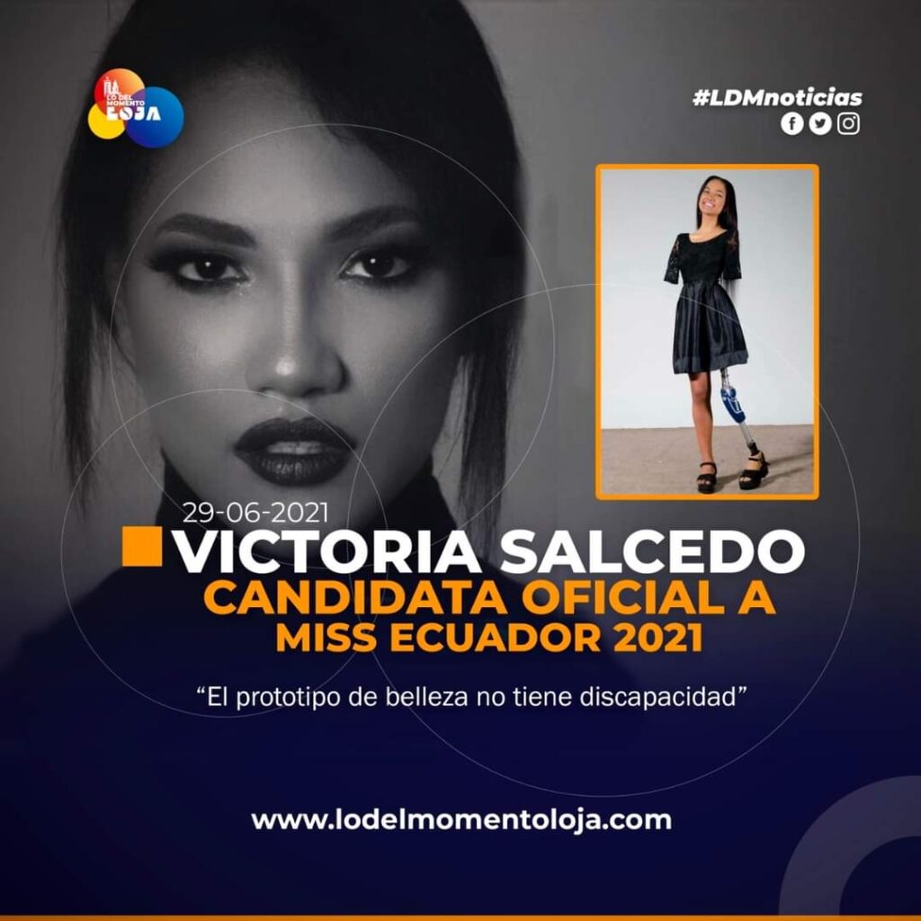 Salcedo (25 años) como candidata a Miss Ecuador 2021 llamó la atención de muchos. Sin los dos brazos y con una pierna menos se ha convertido en la primera mujer con discapacidad en perseguir el título de belleza más importante del país.