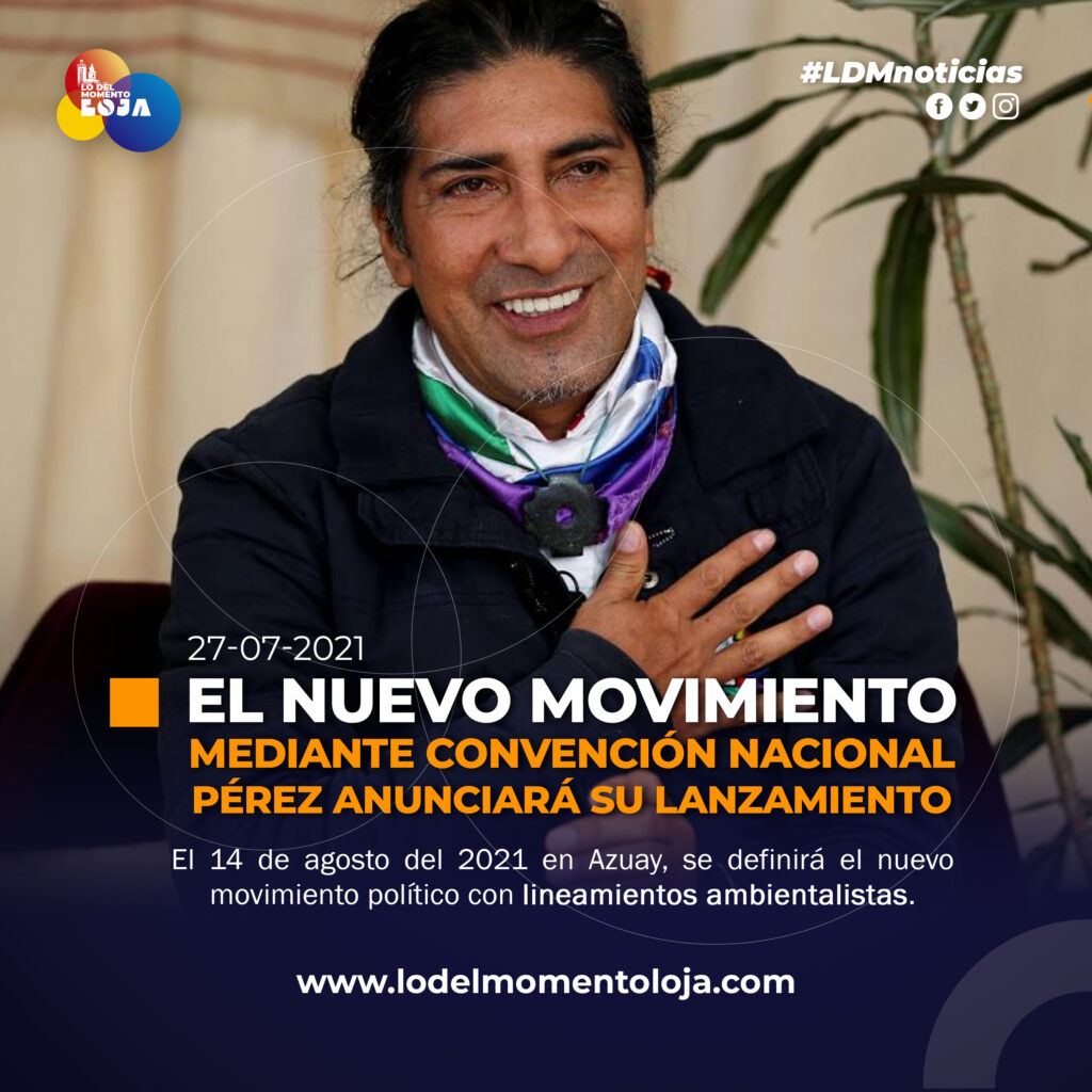 El excandidato presidencial Yaku Pérez, hizo un pronunciamiento pública en una entrevista radial en el que anuncia la creación del nuevo movimiento político, esto se desarrollará el 14 de agosto del 2021 mediante una Convención Nacional en la provincia de Azuay, fecha en la que se discutirá el tema. A decir de Pérez, menciona que sus compañeros de las 24 provincias han hecho un acuerdo general para el movimiento ecologista, feminista, pluralista y democrático.