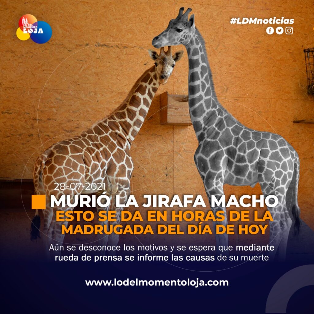 Extraoficialmente se conoce que una de las especies de Giraffa Camelopardalis (macho) del Zoológico Municipal de Loja habría muerto en horas de la madrugada de hoy, las causas aún son desconocidas y se espera el pronunciamiento de los técnicos municipales para ampliar el tema.