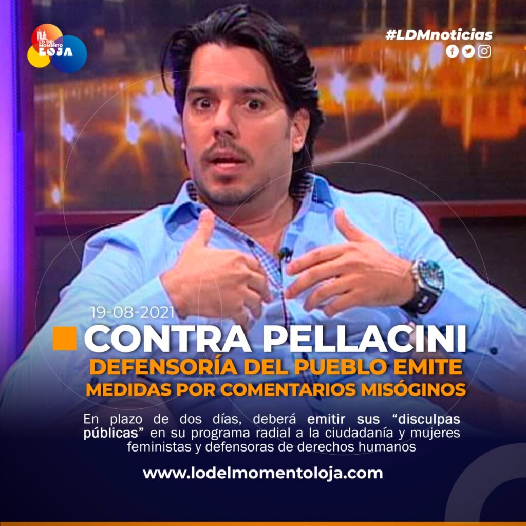 La Defensora del Pueblo (s), Zaida Rovira Jurado, en cumplimiento a las atribuciones establecidas en el artículo 215 numeral 2 de la Constitución de la República de Ecuador y el artículo 6 literal b) de la Ley Orgánica de la Defensoría del Pueblo, emitió medidas de cumplimiento obligatorio e inmediato contra Andrés Pelaccini para que, en el término de dos días, emita sus “disculpas públicas” -en el mismo espacio y horario de su programa radial- a la ciudadanía en general y, en especial, a las mujeres feministas y defensoras de derechos humanos, por sus expresiones sexistas, discriminatorias, segregacionistas y que exaltan la violencia contra las mujeres.