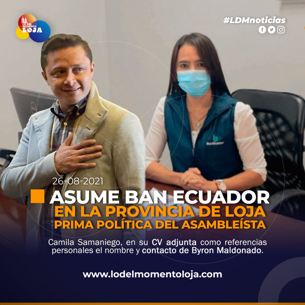 Este medio se comunicó con el asambleísta de CREO, Byron Maldonado y le consultamos ¿Cuál sería su vínculo familiar con la nueva funcionaria? confirmando que es prima de su esposa y que no tiene nada que ver con la designación de la nueva funcionaria.
