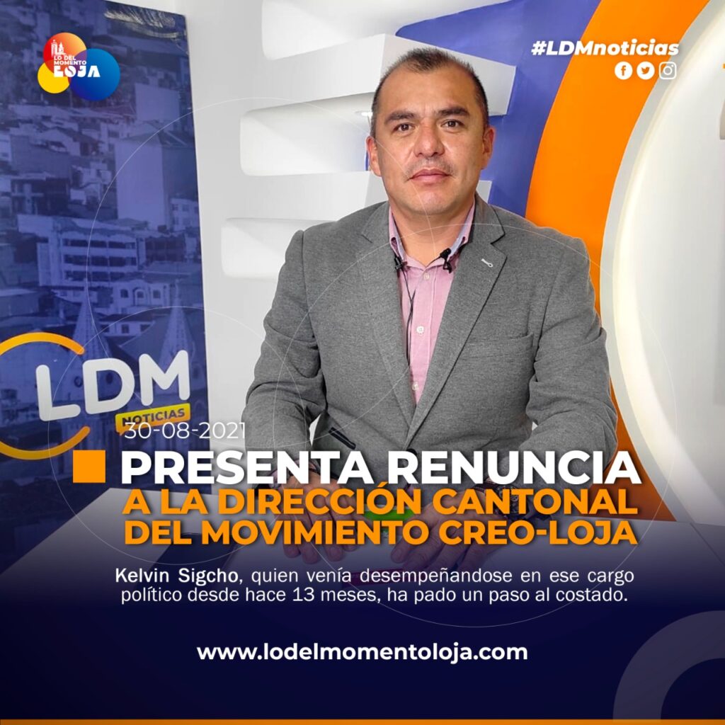 #Loja | Kelvin Sigcho, quien se desempeñaba como Director Cantonal del Movimiento CREO en Loja, ha presentado la renuncia por no compartir con las decisiones políticas al interno y agradeció a los diferentes movimientos y actores que apoyaron a Guillermo Lasso en la segunda vuelta electoral.