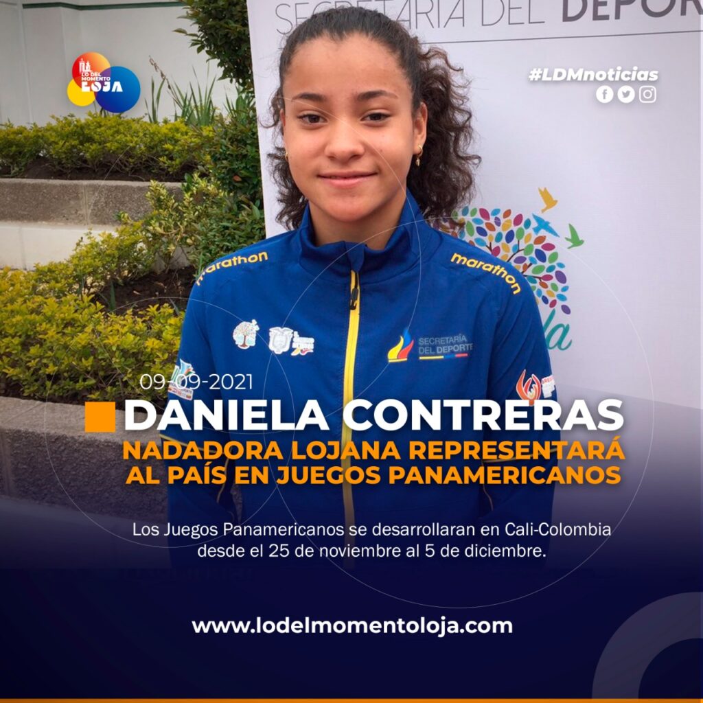 María Daniela Contreras, nadadora lojana representará al país en los Juegos Panamericanos que están próximos a desarrollarse en la ciudad de Cali-Colombia desde el 25 de noviembre al 5 de Diciembre del 2021.