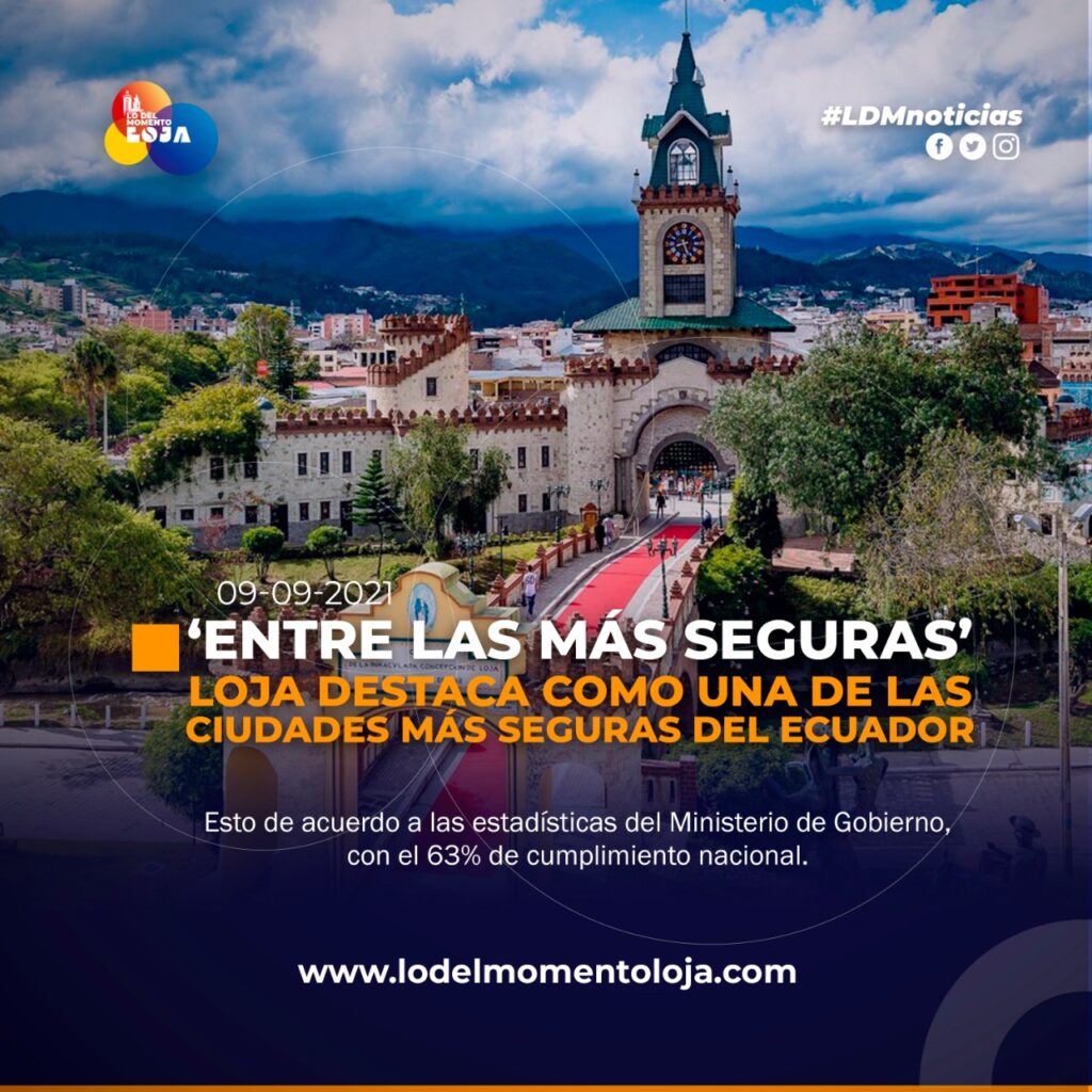 El cantón Loja, por segunda semana consecutiva es considerada una de las ciudades más segura del país, de acuerdo a las estadísticas del Ministerio de Gobierno, con el 63% de cumplimiento nacional, Loja se destaca en ser la ciudad más segura, seguidas de los cantones como; Bolívar y Cotopaxi. Diego Cañar, Comisario de la Policía Nacional de Loja, mencionó “vamos a mantener esa seguridad, intensificando los operativos” que brindan seguridad a los ciudadanos del cantón Loja