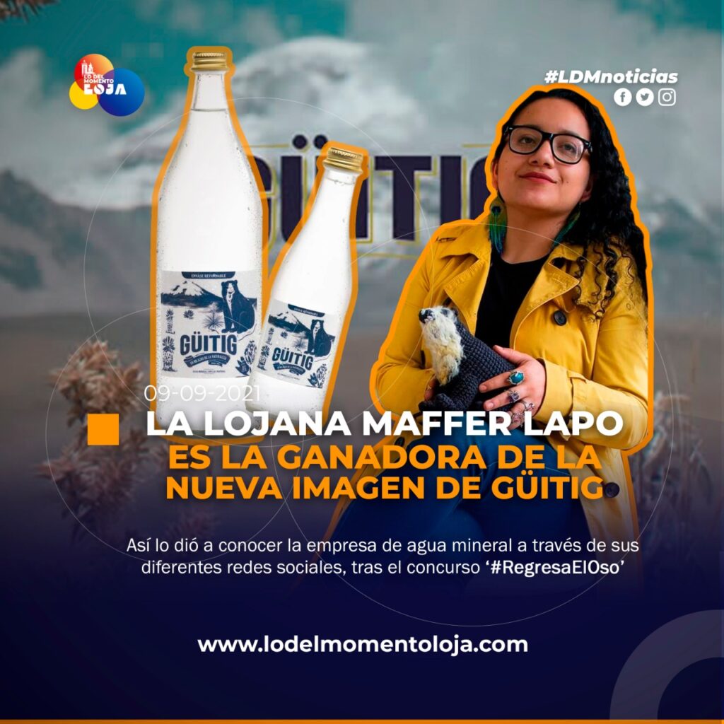 La empresa de agua mineral Güitig, lanzó hace meses atrás, el concurso dirigido a los Güitiglover, para renovar su imagen; durante la travesía y mediante una selección rigurosa, la lojana y talentosa diseñadora María Fernanda Lapo, ha sido la ganadora del concurso, su diseño será desde ahora, la nueva etiqueta de la empresa de agua mineral.