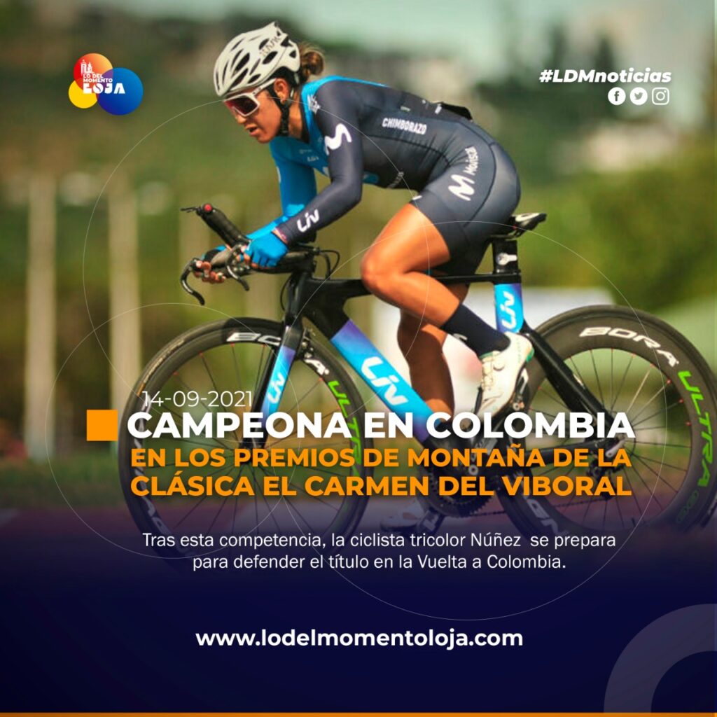 #Internacional | Miryam Núñez, ciclista del Movistar Team Ecuador, se consagró como campeona de los premios de montaña de la vigésima séptima edición de la Clásica “El Carmen del Viboral”, que se desarrolló en Colombia.