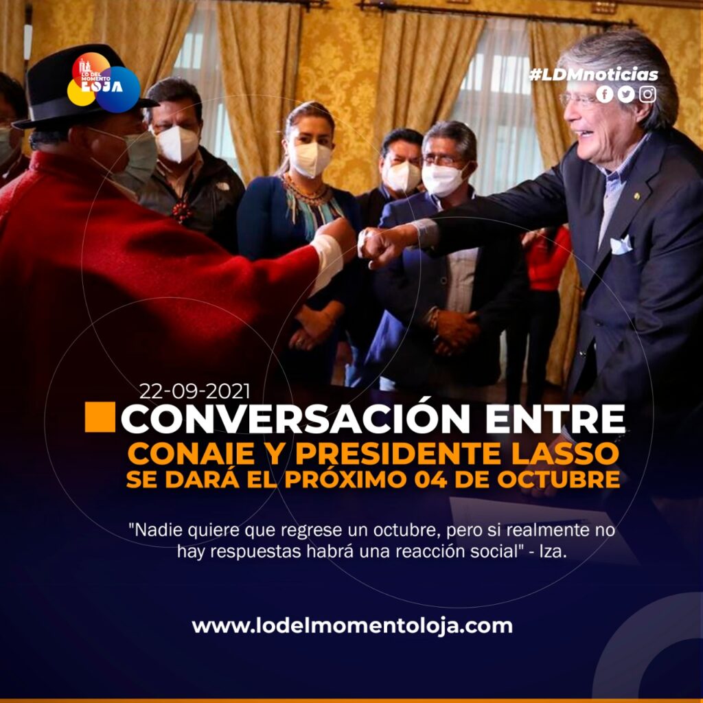 El próximo lunes 4 de octubre se desarrollará la reunión entre el presidente de la República, Guillermo Lasso y la Confederación de Nacionalidades Indígenas del Ecuador (Conaie), dirigida por Leonidas Iza. El evento se desarrollará en el Palacio de Carondelet, con el fin de instalar las mesas del diálogo entre las partes.