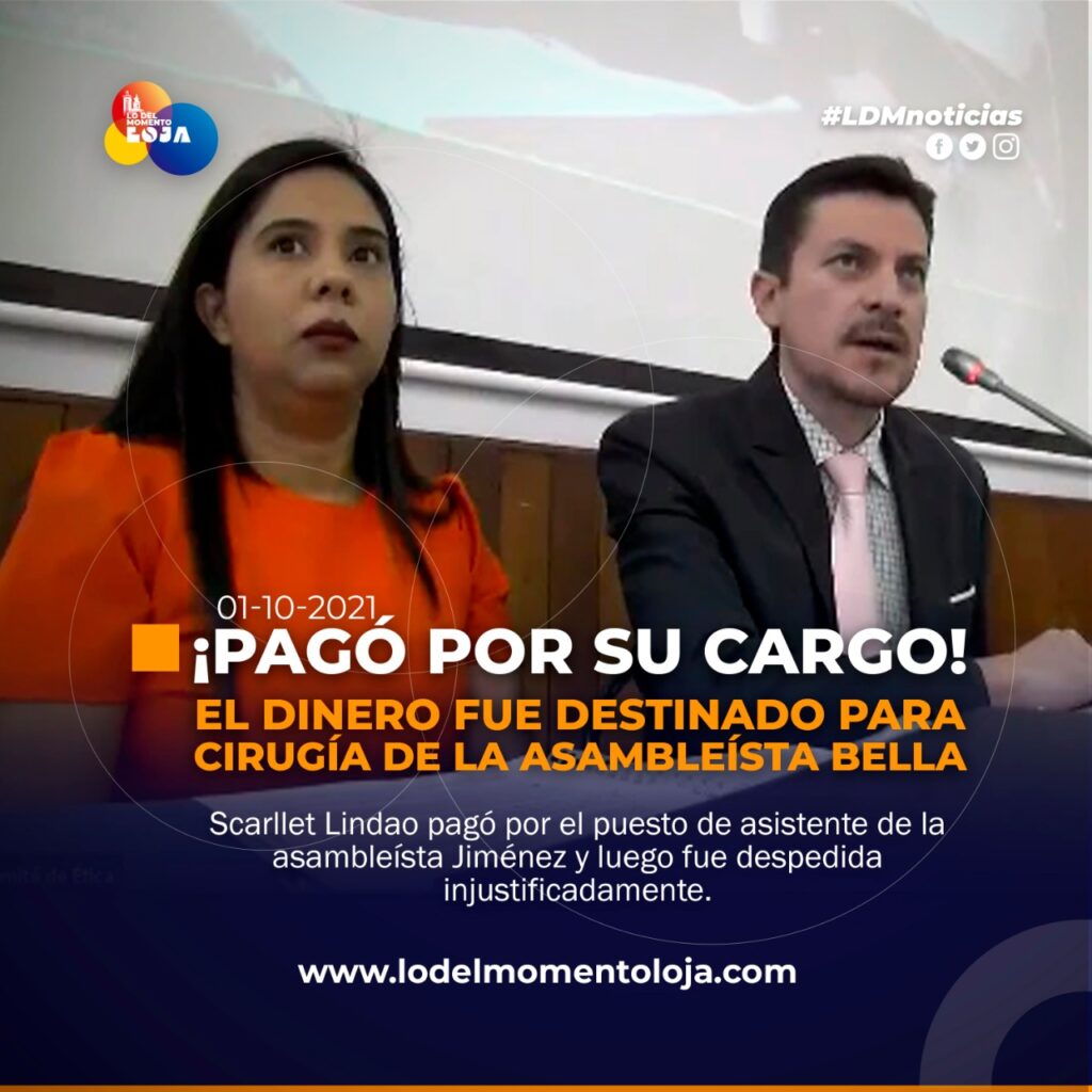 #Ecuador | Asistente habría pagado cirugía de asambleísta Bella Jiménez a cambio de su cargo.
