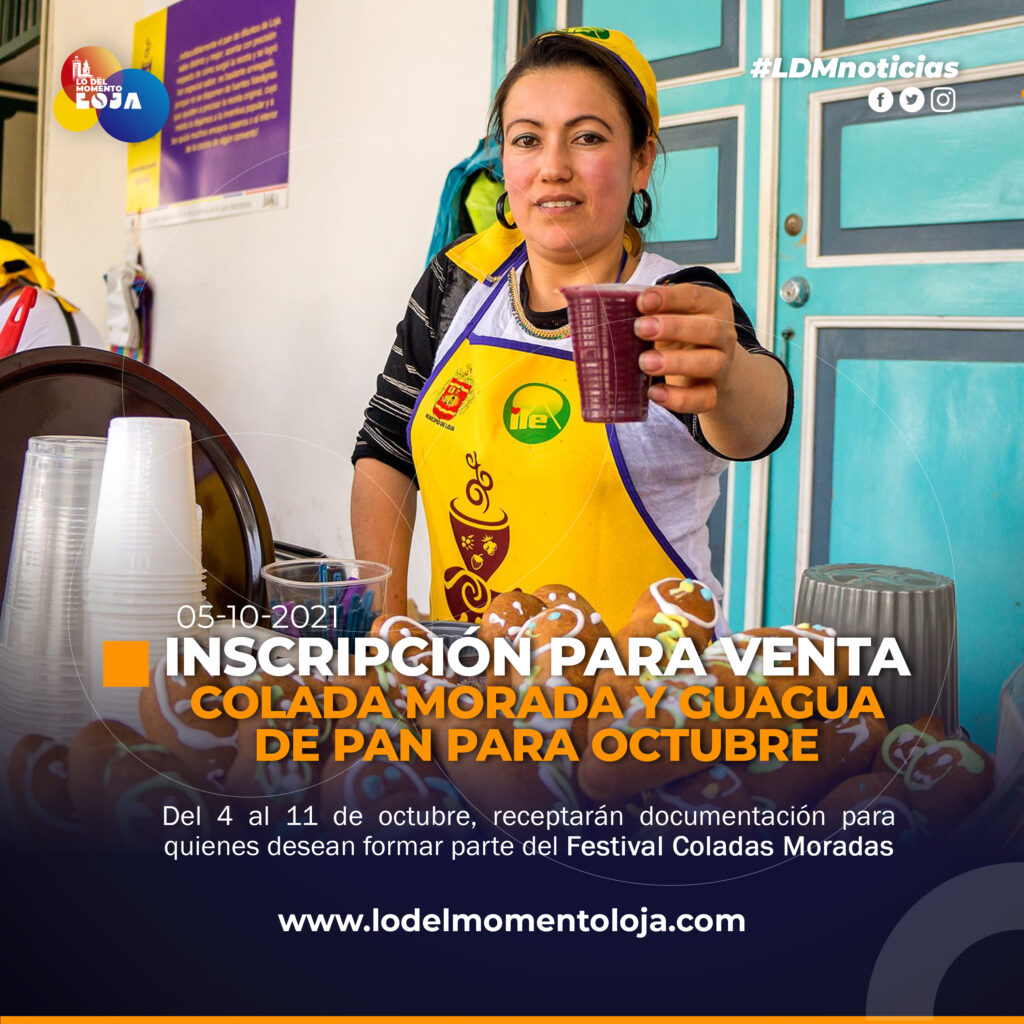 Este mes de octubre se realizará una edición más del Festival de Coladas moradas y figuras de pan en la ciudad de Loja, un acto que forma parte de una tradición en alusión al Día de los difuntos. Por tal motivo, el Municipio de Loja ya comienza a receptar las inscripciones del lunes 4 al lunes 11 de octubre, extendiendo una invitación a todos los que desean formar parte del evento mediante la comercialización.