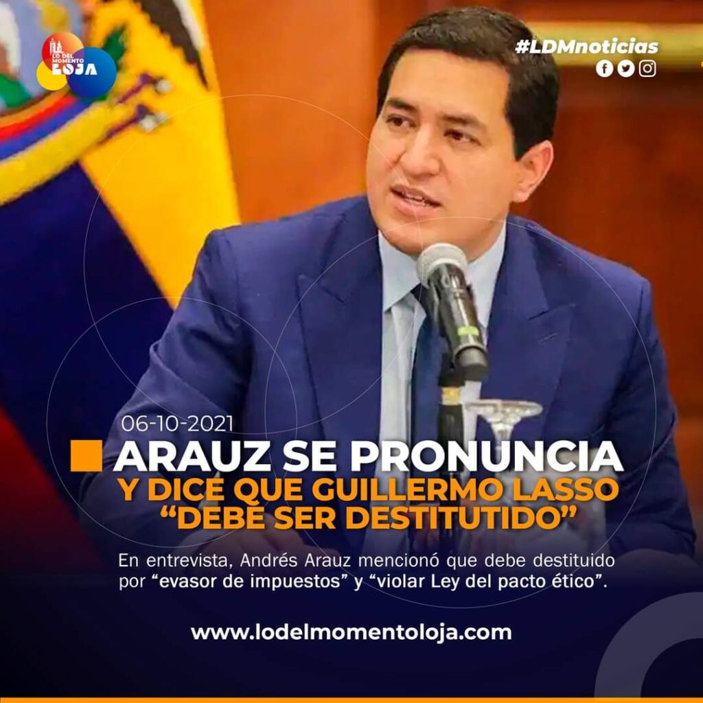 #Ecuador | El excandidato presidencial Andrés Arauz, en entrevista para Telesur hizo mención al caso #PandoraPapers, una investigación periodística de ICIJ y la relación con el presidente Guillermo Lasso, recalcando que debería ser destituido por tal escándalo.