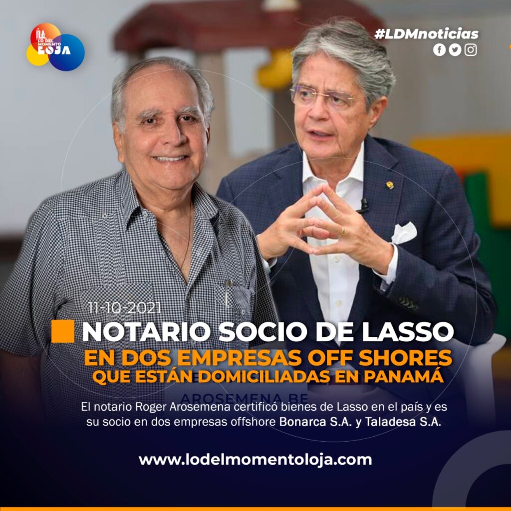 Según la periodista investigadora Cynthia García, del diario Página 12, reveló a través de un programa emitido por Ecuador TV, que el notario Roger Arosemena Benítez, en cuyo despacho reposan las escrituras de los bienes del expresidente ejecutivo del Banco de Guayaquil y actual presidente de la República, Guillermo Lasso, es su propio socio en dos empresas en paraísos fiscales.