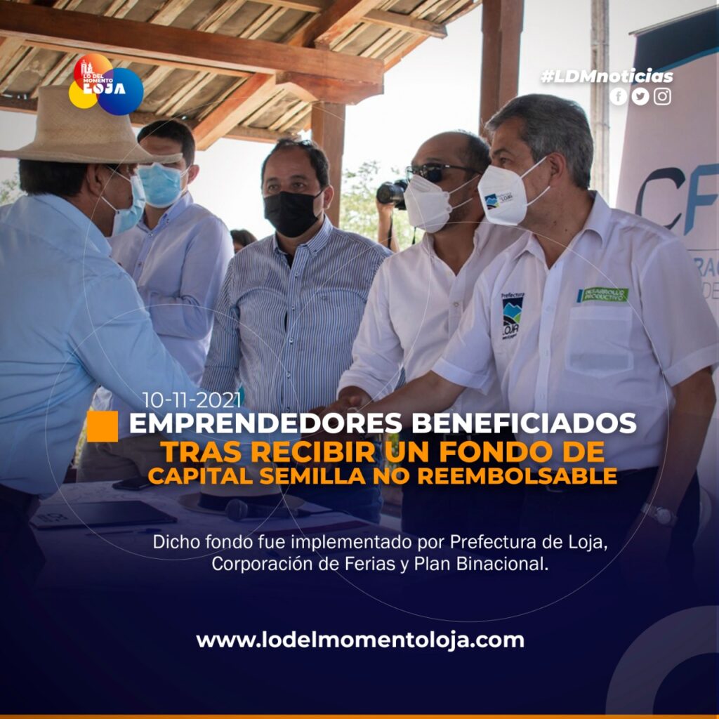 Con la finalidad de apoyar a la reactivación productiva post COVID en la provincia, la Prefectura de Loja, Corporación de Ferias y Plan Binacional, capítulo Ecuador implementaron un fondo de capital semilla no reembolsable, del mismo se beneficiaron 5 emprendedores del cantón Zapotillo.