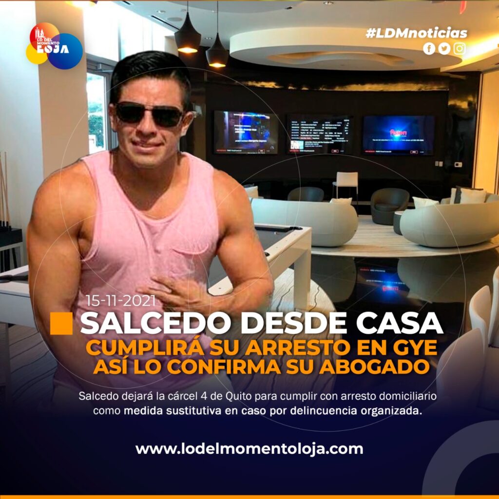 Por disposición del Tribunal Penal de Guayaquil, Salcedo que estaba procesado de delincuencia organizada, cumplirá con arresto domiciliario desde su casa ubicada en GYE, así manifiesta su abogado patrocinador que espera que esta disposición se ejecute hasta el viernes de esta semana.