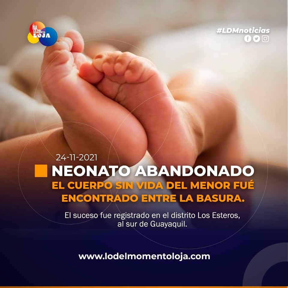 El hecho fue notificado a la Policía Nacional en la cooperativa Santiaguito Roldós, en el distrito Los Esteros, sur de Guayaquil. El neonato de sexo masculino fue abandonado en una acera en medio de basura desperdigada en el suelo.