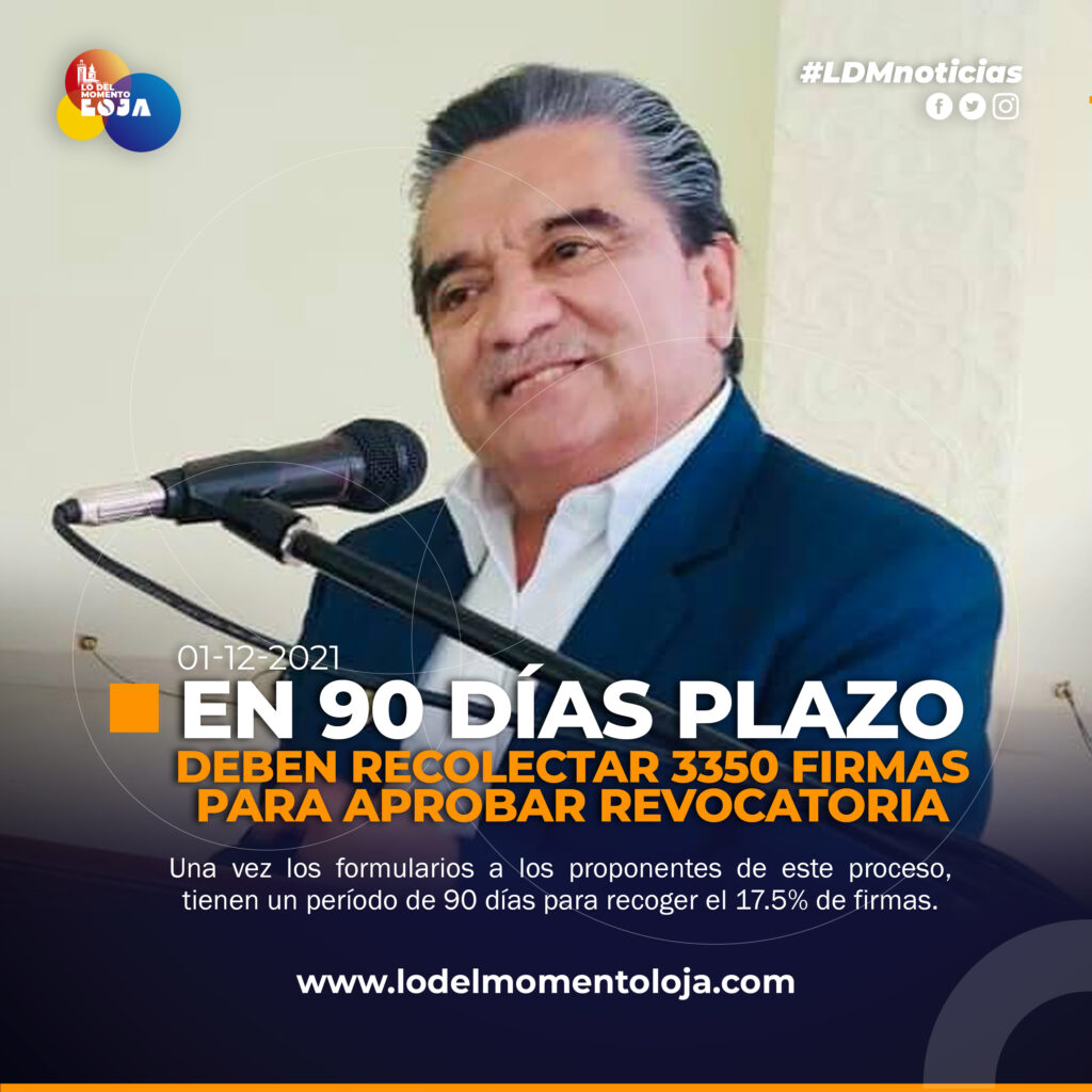 Una vez que los tenga, tienen un plazo de 90 días para entregar el 17,5% de 19.701 de votantes, es decir, unas 3.350 firmas de todo el cantón Paltas y en caso de no haber impugnaciones, se procederá a llamar a elecciones para consultarle al pueblo si son o no revocadas las autoridades mencionadas.
