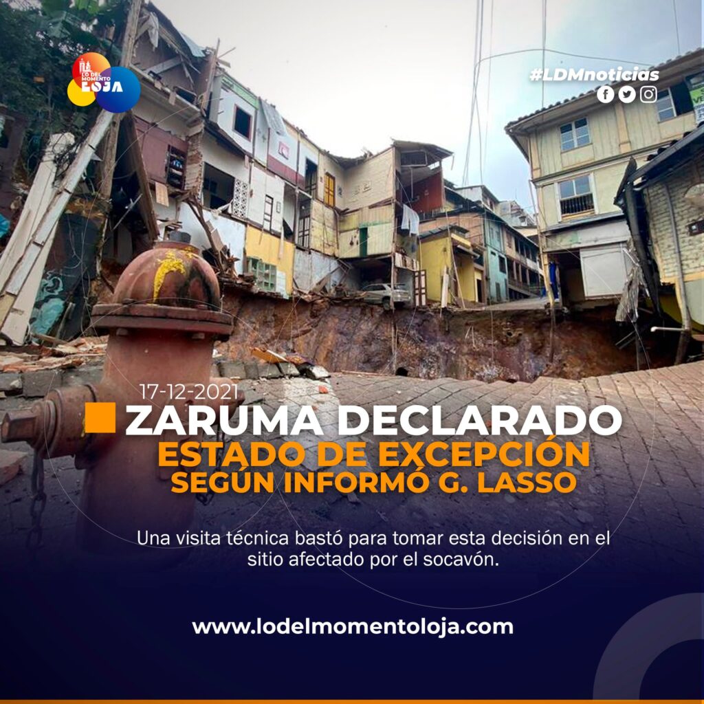 Después de un recorrido por la zona perjudicada, con técnicos especialistas y las autoridades pertinentes, se resolvió declarar en estado de excepción al cantón Zaruma, en la provincia de El oro.