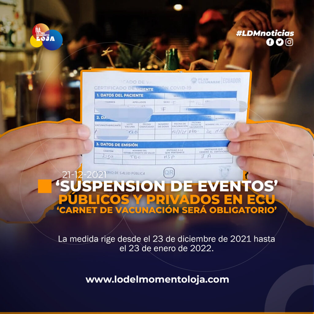 – Presentar el carné o certificado de vacunación obligatorio, esta medida estará vigente hasta el 23 de enero.
