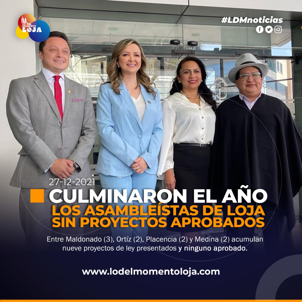 Lo que finalmente deja como resultado 20 leyes aprobadas por el Pleno de la Asamblea Nacional y publicadas en el Registro Oficial desde el 14 de mayo hasta el 14 de diciembre del 2021. Sin embargo, los legisladores lojanos, no tienen una sola ley aprobada.