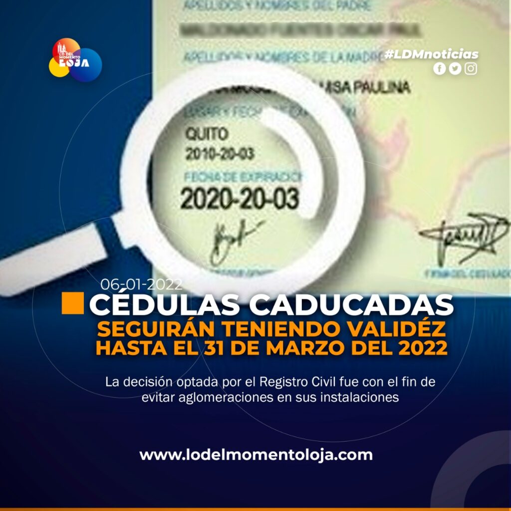 El Registro Civil decidió extender la vigencia de las cédulas caducadas hasta el 31 de marzo del 2022 con el fin de evitar aglomeraciones en sus instalaciones estos días.