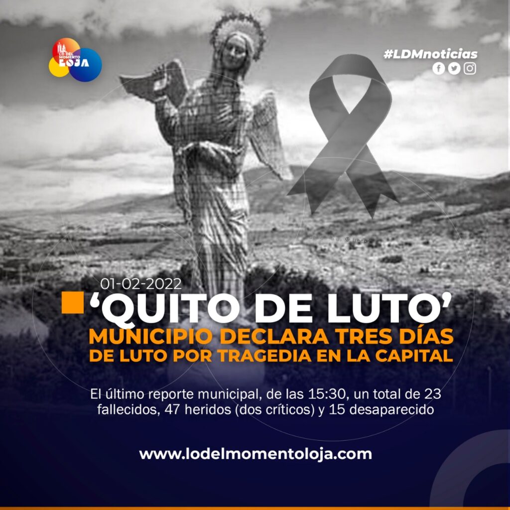 #UIO | El Municipio de Quito, presidido por el alcalde Santiago Guarderas, declaró tres días de luto en el Distrito Metropolitano. Como parte de la medida, las banderas se izarán a media asta en las dependencias municipales.