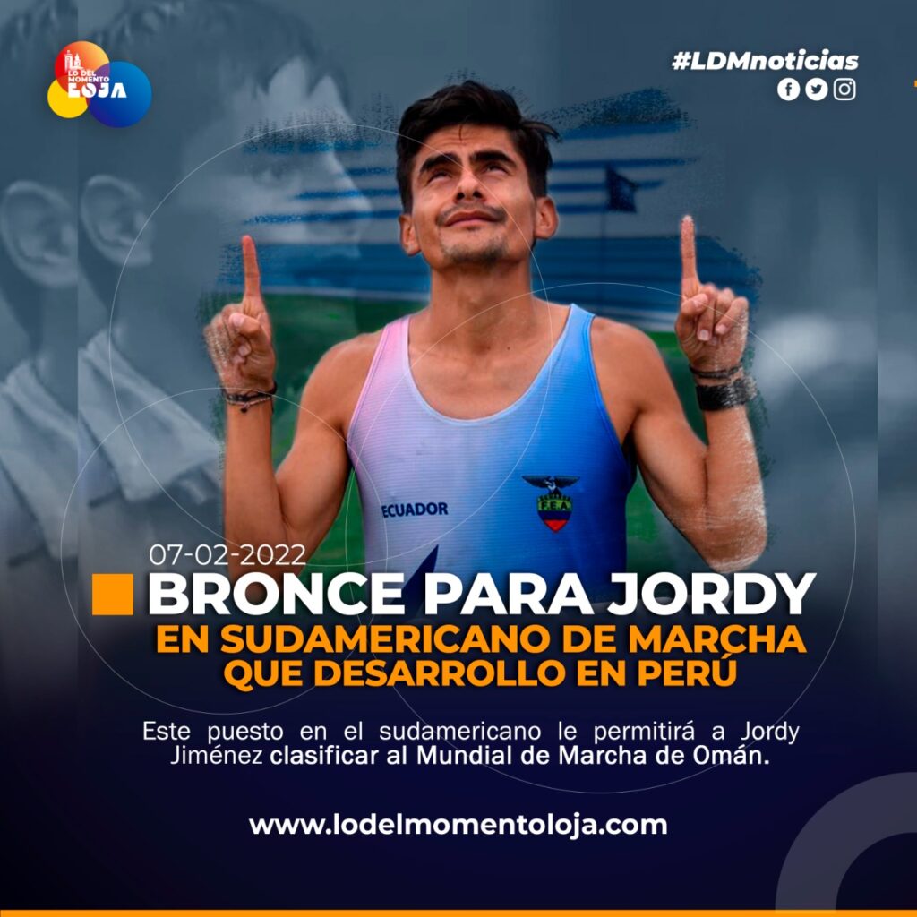 El atleta lojano, Jordy Jiménez Arrobo, obtuvo la medalla de bronce en los 20 kilómetros, ubicándose tercero en la tabla de posiciones con un tiempo de 1:25:28. Quienes ocuparon los dos primeros lugares son el deportista peruano César Rodríguez, que se consagró campeón; mientras que el brasileño Caio Oliveira, alcanzó la presea de plata.