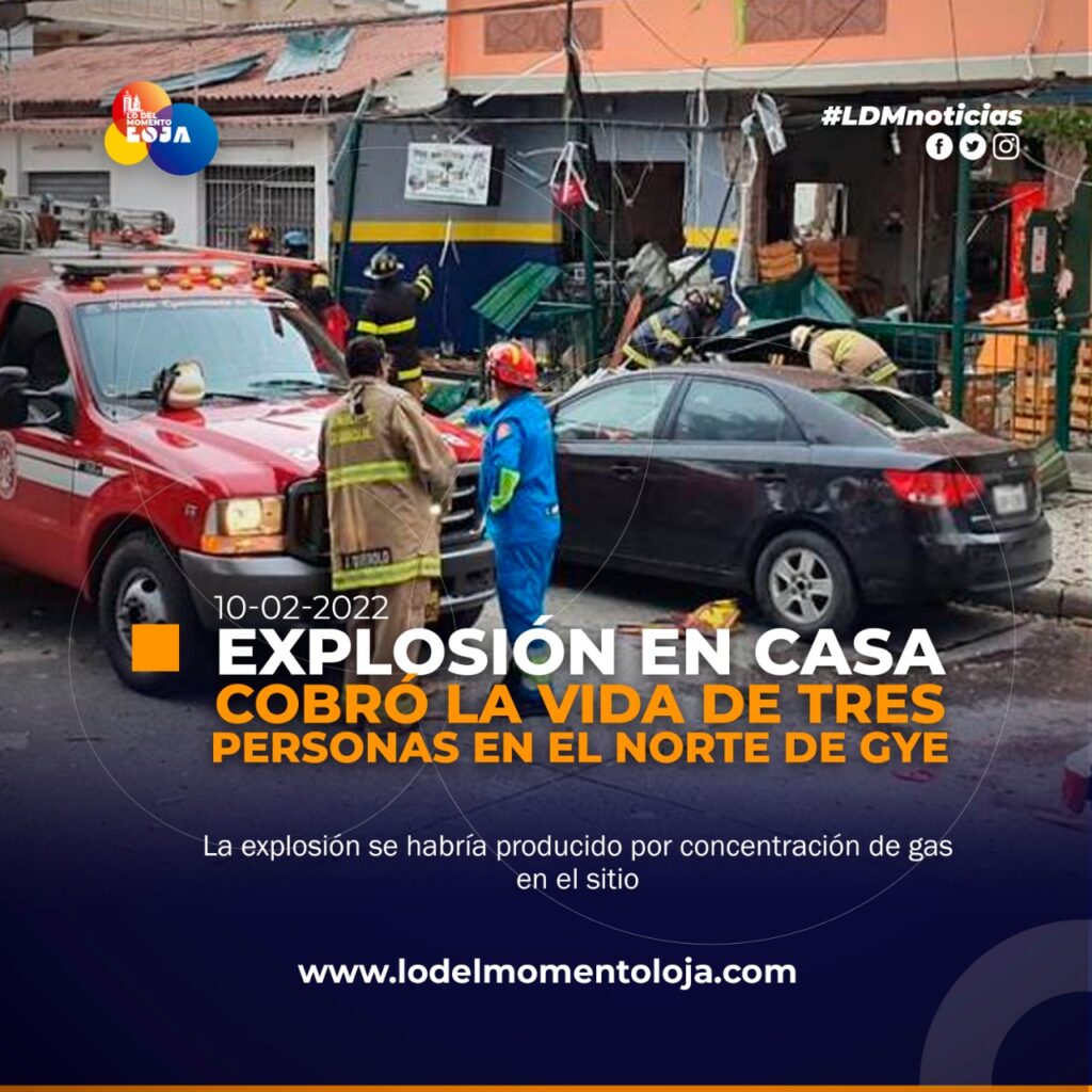 Tres personas murieron en una explosión registrada la mañana del 10 de febrero de 2022, en una casa ubicada en el sector El Cóndor, en el norte de Guayaquil. Los bomberos indicaron que el hecho se produjo como consecuencia de la acumulación de gas en la vivienda.