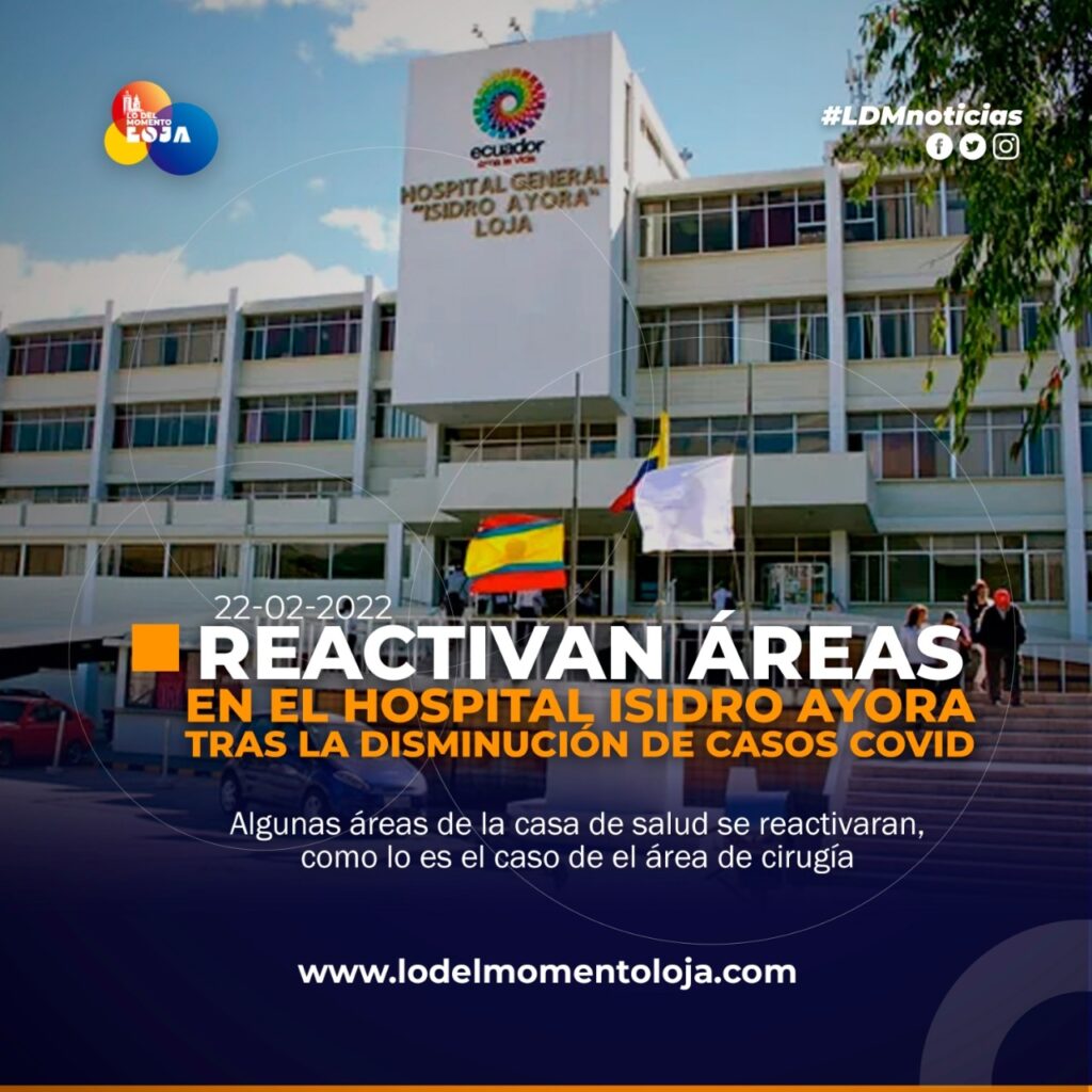 Tras la disminución de casos Covid-19 en esta casa de salud, Jorge Oswaldo Aguirre Valdivieso Gerente del Hospital Isidro Ayora de Loja. informó que algunas áreas se reactivarán durante estos días, para el uso de la ciudadanía general, como lo es el área de cirugía, misma que hasta el momento ya cuenta con el 80% de su uso.