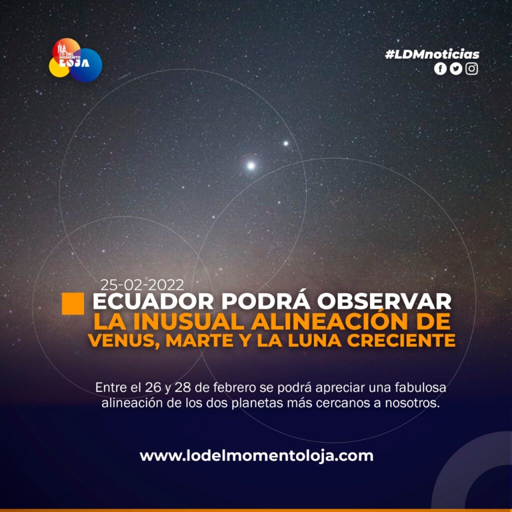 #Mundo | Los planetas Marte y Venus, junto con la Luna, exhibirán un espectáculo astronómico inusual este 26 y 27 de febrero: una conjunción.