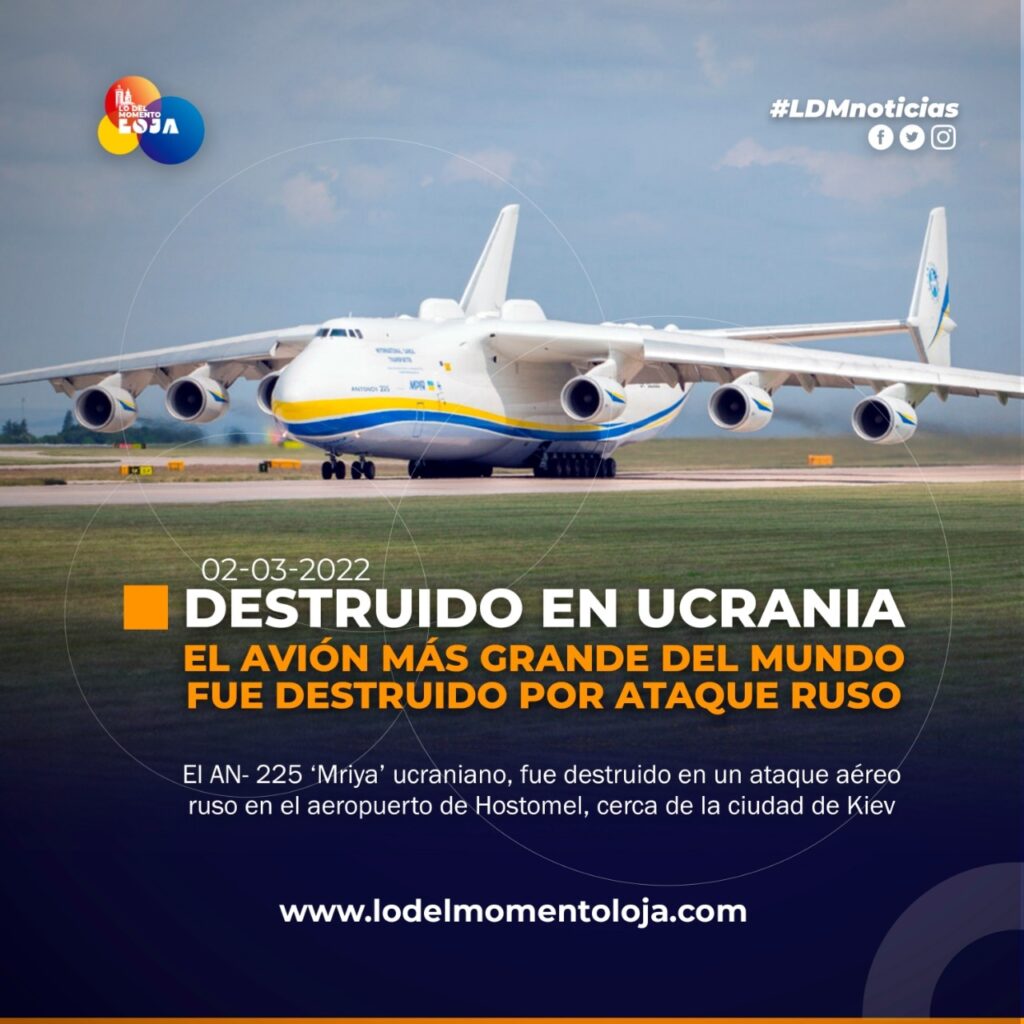 #Internacional | El avión más grande del mundo –el avión de carga Antonov-225 de Ucrania- fue destruido por ataques rusos en las afueras de Kiev en el cuarto día de la invasión de Moscú, dijo el pasado domingo 27 de Febrero el grupo estatal ucraniano Ukroboronprom.