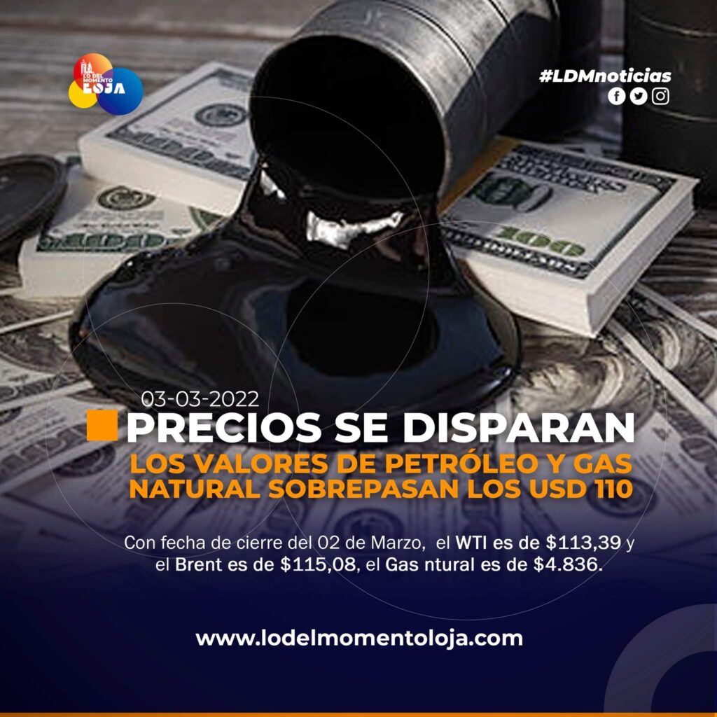 Esta materia prima se cotizó en USD 113,39 según la bolsa de New York (Nymex, por sus siglas en inglés. Mientras que por otro lado el barril Brent del mar del Norte, alcanzó un valor de $115,08 y el Gas Natural llegó al punto máximo de $4.836.