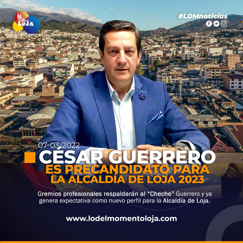 Este 2022 ha iniciado con muchas sorpresas e incógnitas con lo que tiene que ver en postulaciones de precandidaturas para la alcaldía del cantón Loja, una de esas sorpresas es la postulación del Dr. César “Cheche” Guerrero, reconocido abogado de la provincia de Loja, ha expuesto públicamente sus intenciones para impulsar su precandidatura en elecciones seccionales del 2023.
